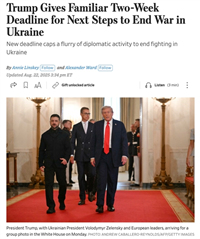 舆论认为,这是特朗普熟悉的“计时器外交”。《华尔街日报》称其为“熟悉的两周期限”:把一段明确的期限公开化,同时把“我给过机会”的叙事摆上台面,以时间倒逼谈判各方,也为后续政策加码预热。阿拉斯加会晤没有产出可执行的停火或三方会面安排,倒计时的设置相当于把责任前置公开——若两周后没有实质动静,升级就更容易获得政治上的正当性。