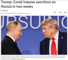 阿拉斯加会后无果,特朗普再启两周“计时器”